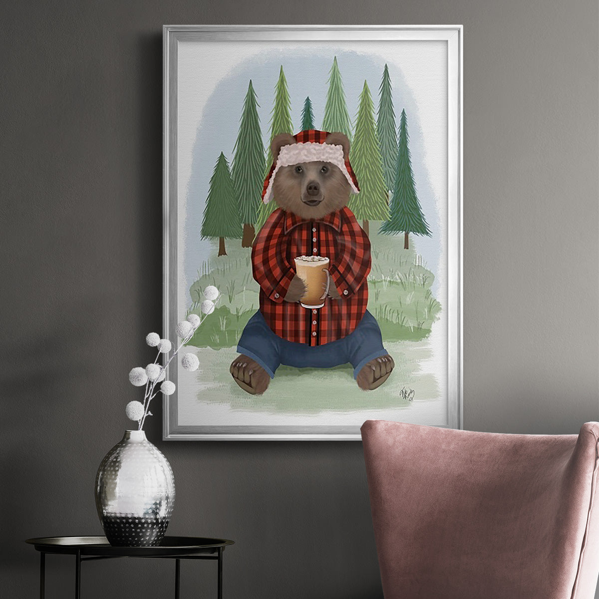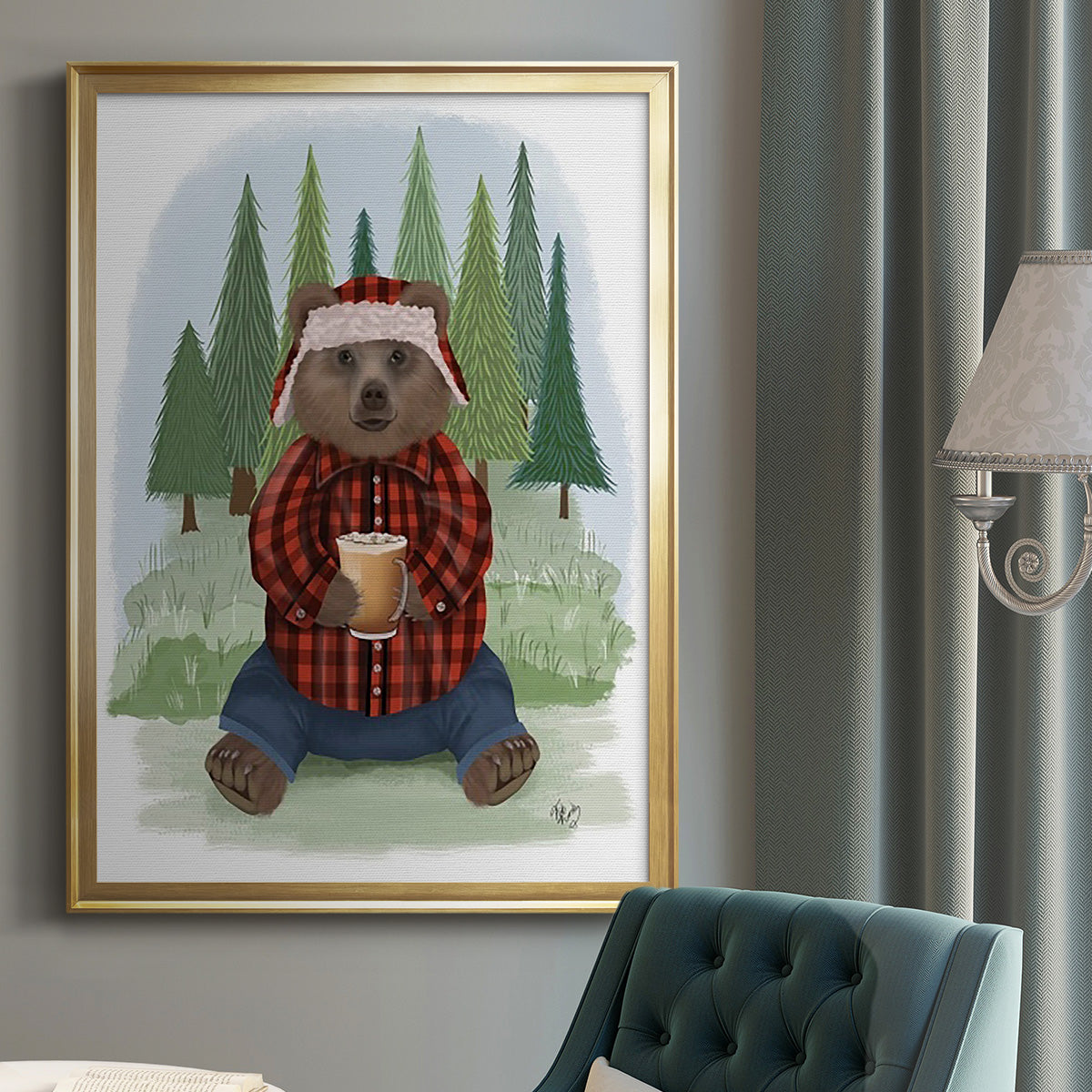 Lumberjack Bear Latte - Modern Framed Canvas Print – Renditions Art Skip to content